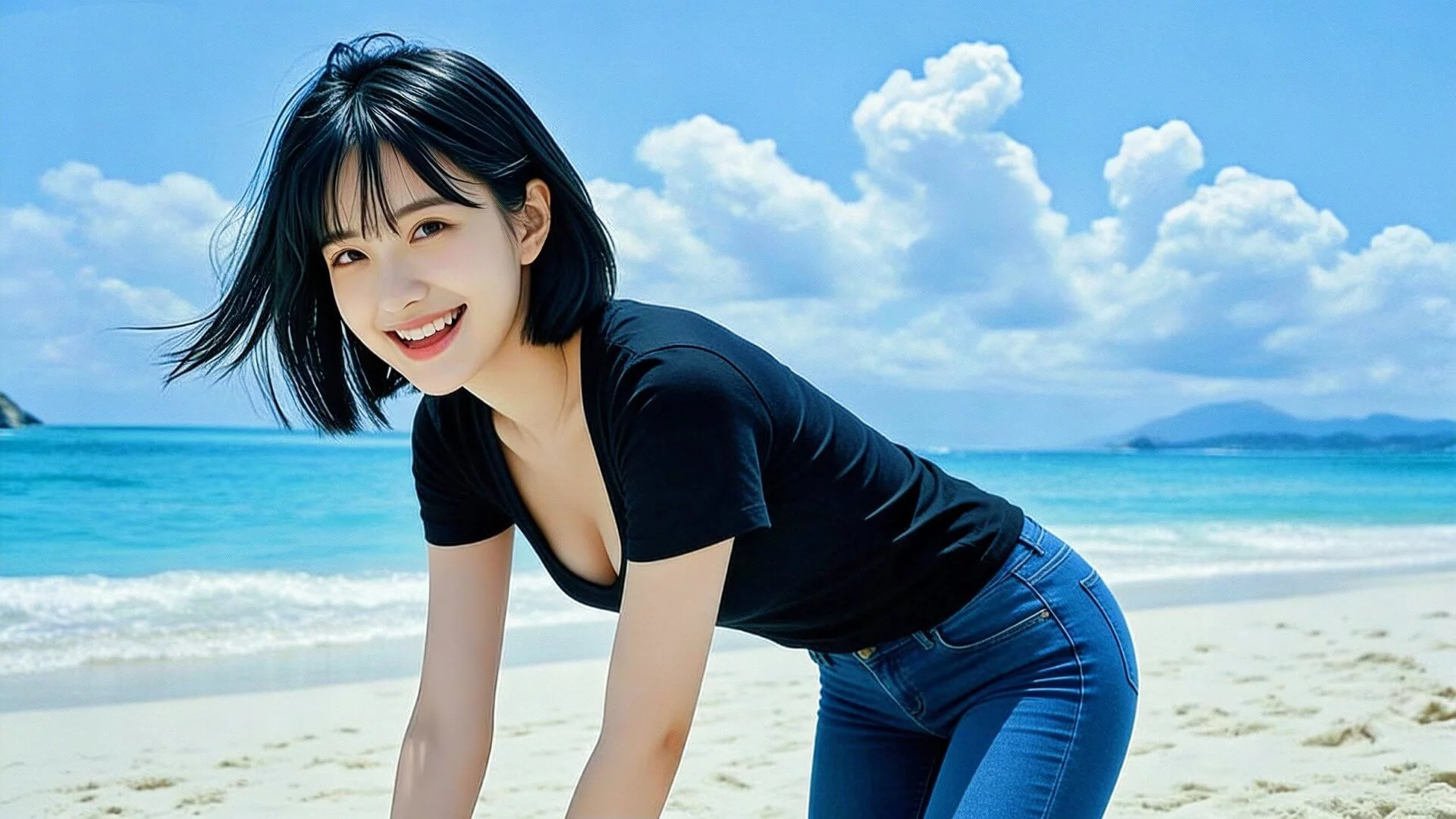 甜美纤细的牛仔裤美女,展现迷人的身材!